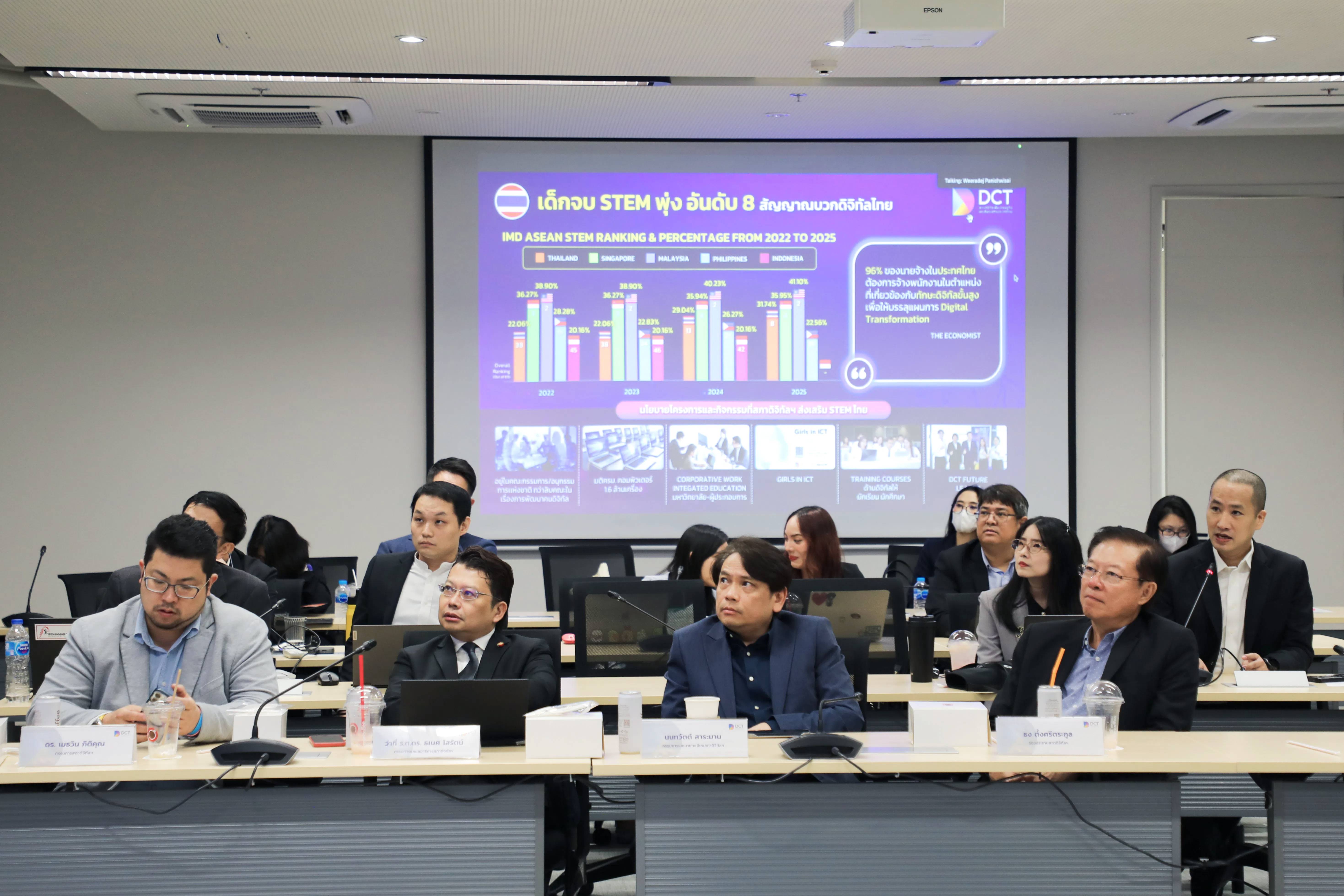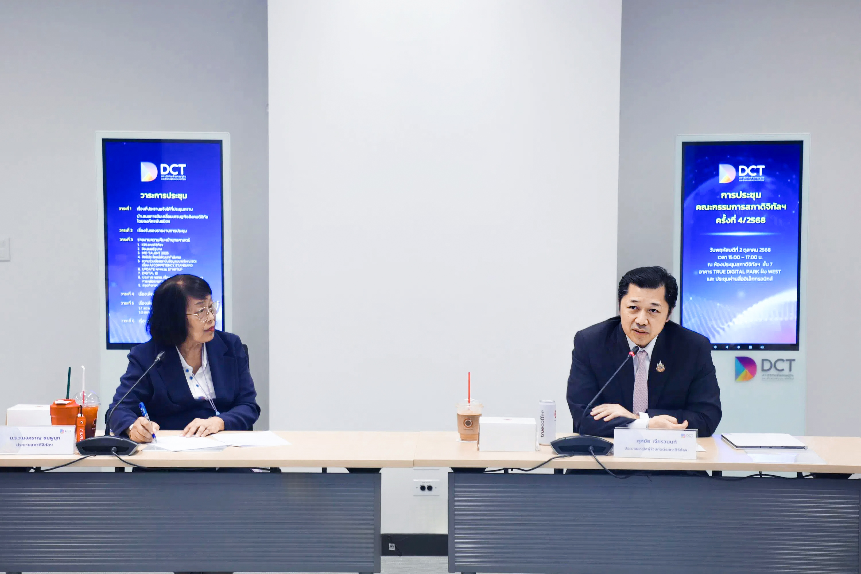 วันที่ 2 ตุลาคม 2568 ณ ห้องประชุมใหญ่ สภาดิจิทัลฯ ทรู ดิจิทัล พาร์ค (เวสต์) - สภาดิจิทัลเพื่อเศรษฐกิจและสังคมแห่งประเทศไทย โดย นายศุภชัย เจียรวนนท์ ประธานอาวุโสผู้ร่วมก่อตั้งสภาดิจิทัลฯ ม.ร.ว. นงคราญ ชมพูนุท ประธานสภาดิจิทัลฯ จัดการประชุมคณะกรรมการฯ ครั้งที่ 4/2568 เพื่อหารือความคืบหน้าโครงการสำคัญ และการขับเคลื่อนเศรษฐกิจดิจิทัลของประเทศ โดยเน้นย้ำถึงโอกาสเชิงยุทธศาสตร์ และความท้าทายที่ประเทศไทยต้องเร่งเตรียมความพร้อม เพื่อยกระดับขีดความสามารถทางการแข่งขันในเวทีโลก