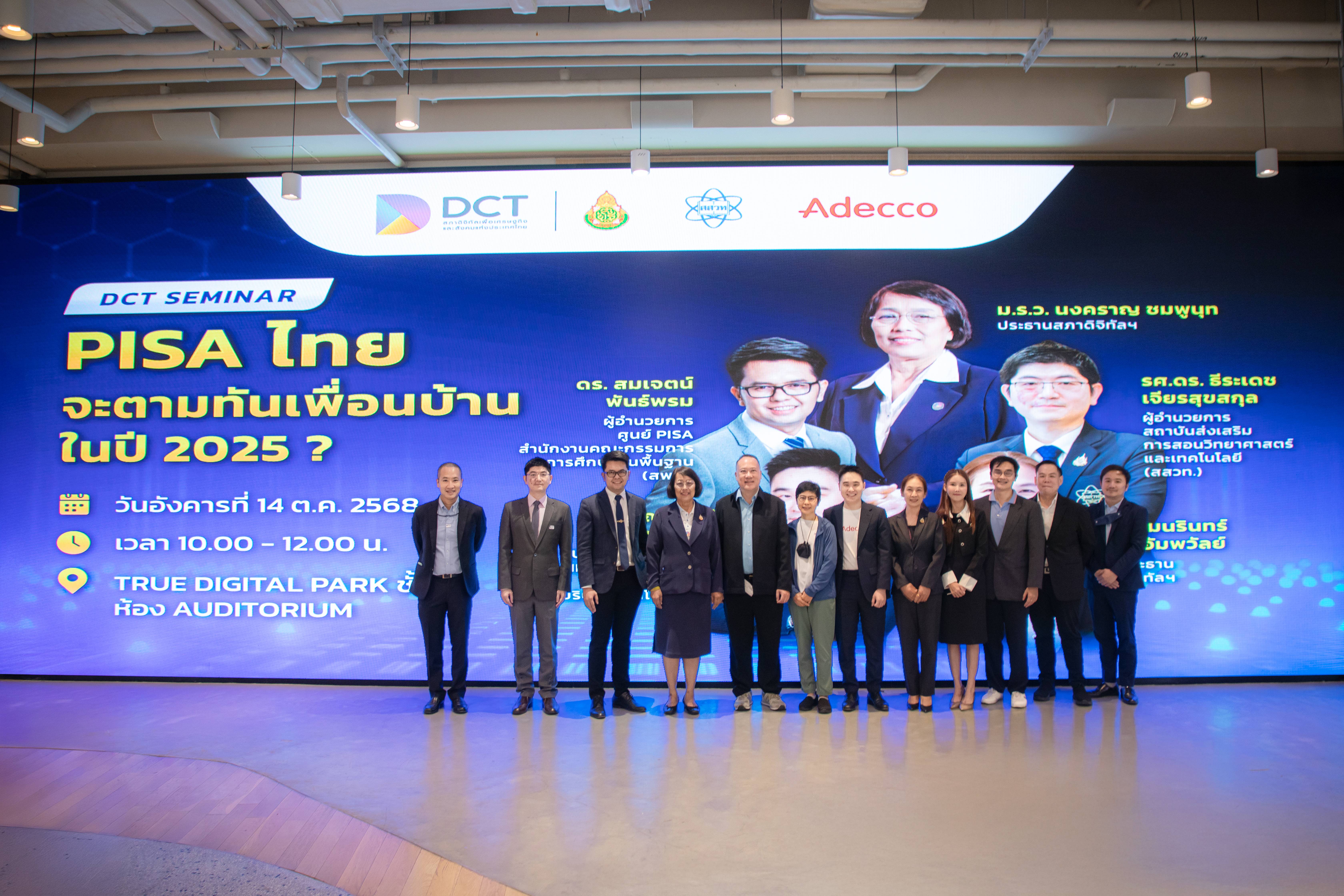 14 ตุลาคม 2568 - สภาดิจิทัลเพื่อเศรษฐกิจและสังคมแห่งประเทศไทย (DCT) จัดงาน DCT Seminar หัวข้อ “PISA ไทยจะตามทันเพื่อนบ้านในปี 2025?” เพื่อวิเคราะห์ผลคะแนน PISA และระดมความคิด เพื่อหาแนวทางการพัฒนาเยาวชนอย่างเร่งด่วน โดยเน้นย้ำถึงความจำเป็นในการยกระดับทักษะ STEM และ Digital เพื่อเพิ่มศักยภาพการแข่งขันของประเทศในเวทีโลก