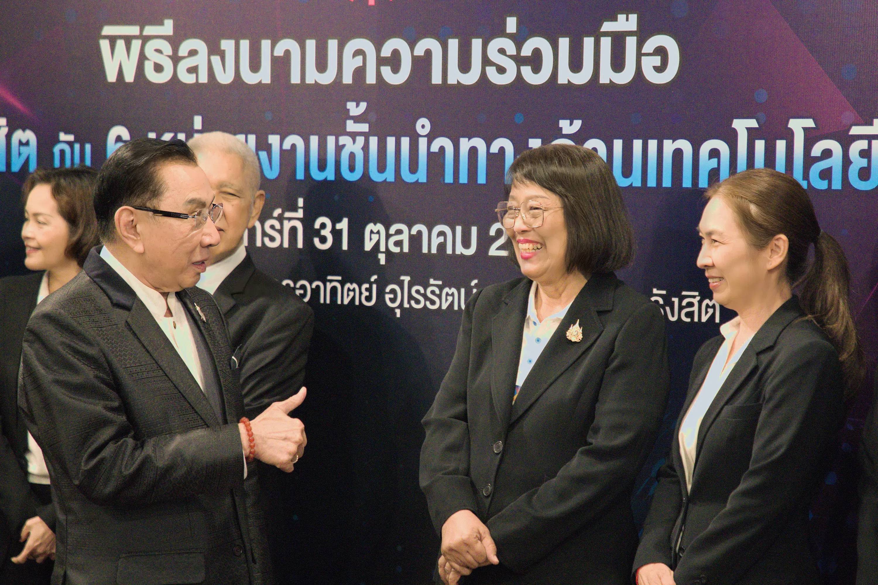 วันศุกร์ที่ 31 ตุลาคม 2568 ถือเป็นหมุดหมายสำคัญของการสร้างความร่วมมือระหว่างภาคการศึกษาและภาคอุตสาหกรรม เมื่อ สภาดิจิทัลเพื่อเศรษฐกิจและสังคมแห่งประเทศไทย (DCT) นำโดย ม.ร.ว. นงคราญ ชมพูนุท ประธานสภาดิจิทัลฯ และ นางเขมนรินทร์ รัตนาอัมพวัลย์ รองประธานสภาดิจิทัลฯ ได้ลงนามบันทึกข้อตกลงความร่วมมือทางวิชาการ (MOU) ด้านเทคโนโลยีและปัญญาประดิษฐ์ (AI) ร่วมกับ มหาวิทยาลัยรังสิต นำโดย ดร.อาทิตย์ อุไรรัตน์ อธิการบดี ม.รังสิต และ รศ.ดร. ทศนัย ชุ่มวัฒนะ ผู้ช่วยอธิการบดีฝ่ายบริหาร ซึ่งแสดงให้เห็นถึงความร่วมมือเพื่ออนาคตที่ยั่งยืน ณ ห้อง 1-801 อาคารอาทิตย์ อุไรรัตน์