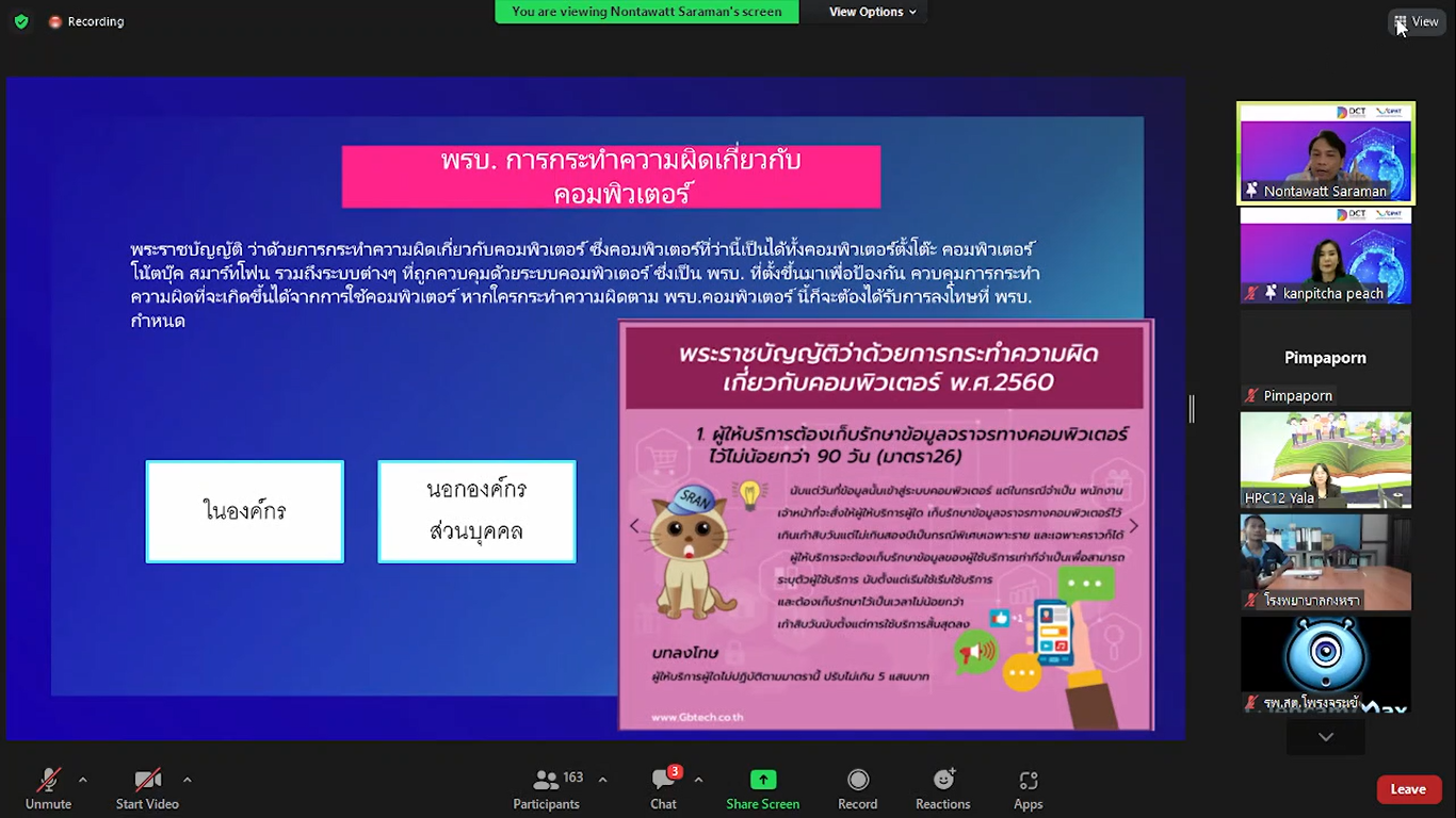 วันที่ 23 สิงหาคม 2565 - “สภาดิจิทัลเพื่อเศรษฐกิจและสังคมแห่งประเทศไทย” โดย “นายนนทวัตต์ สาระมาน” กรรมการสภาดิจิทัลเพื่อเศรษฐกิจและสังคมแห่งประเทศไทย ได้ร่วมเป็นวิทยากรในโครงการบูรณาการเครือข่ายเพื่อส่งเสริมการเกิดอย่างมีคุณภาพ กิจกรรมที่ 4 ประชุมขับเคลื่อนสนับสนุนการใช้ดิจิทัลแพลตฟอร์มและรูปแบบสื่อความรู้ เขตสุขภาพที่ 12 จัดโดยกรมอนามัย ศูนย์อนามัยที่ 12 ยะลา ในรูปแบบออนไลน์ โดยมีนายแพทย์อรรถสิทธิ์ แดงมณี นายแพทย์เชี่ยวชาญ (ด้านเวชกรรม) ผู้อำนวยการศูนย์อนามัยที่ 12 ยะลา กล่าวเปิดการประชุม มีวัตถุประสงค์เพื่อพัฒนาศักยภาพความสามารถบุคลากร ผู้รับผิดชอบงานด้านคอมพิวเตอร์และเทคโนโลยีสารสนเทศ ตลอดจนการยกระดับคุณภาพองค์กรให้สอดคล้องกับดิจิทัลในยุคปัจจุบัน