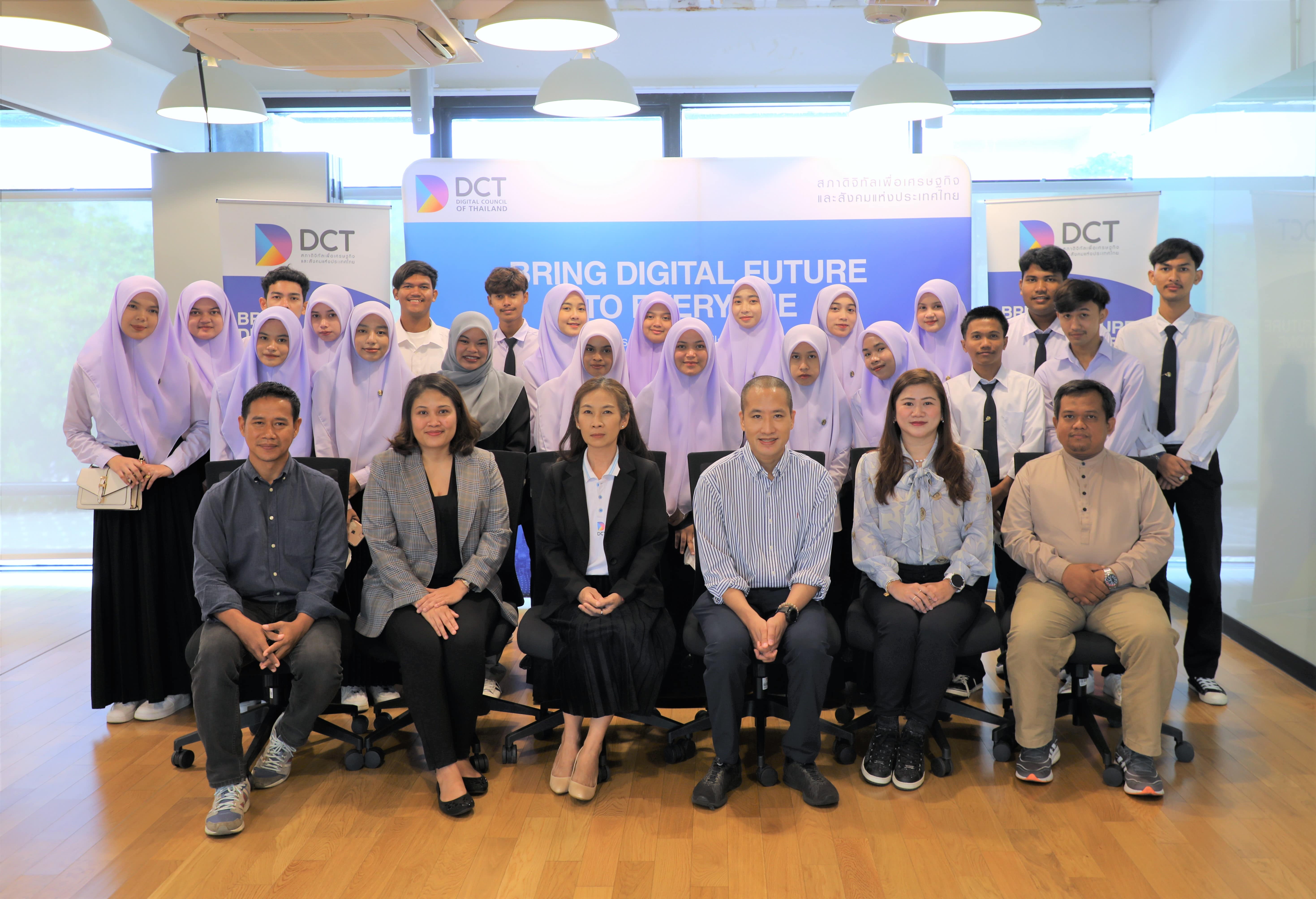 วันพุธที่ 17 พฤษภาคม 2566, อาคารสุทธิชั้น 4 ถนนเพชรบุรีตัดใหม่กรุงเทพฯ - “สภาดิจิทัลเพื่อเศรษฐกิจและสังคมแห่งประเทศไทย” นำโดย “นางเขมนรินทร์ รัตนาอัมพวัลย์” รองประธานสภาดิจิทัลเพื่อเศรษฐกิจและสังคมแห่งประเทศไทย และประธานพันธกิจด้านการพัฒนาศักยภาพทรัพยากรมนุษย์ดิจิทัล ให้การต้อนรับอาจารย์และนักศึกษา คณะวิทยาการจัดการ สาขาการจัดการธุรกิจดิจิทัลและนวัตกรรม มหาวิทยาลัยราชภัฏยะลา พร้อมด้วย “ดร.อธิป อัศวานันท์” ผู้อำนวยการสภาดิจิทัลเพื่อเศรษฐกิจและสังคมแห่งประเทศไทย ร่วมบรรยายในหัวข้อ “วิสัยทัศน์ พันธกิจ สภาดิจิทัลฯ ในการขับเคลื่อนพัฒนาดิจิทัลของประเทศไทย” เพื่อให้ความรู้แก่นักศึกษาถึงการดำเนินงานตามพันธกิจยุทธศาสตร์ สภาดิจิทัลฯ ตลอดจนมาตรการ นโยบายภาครัฐต่างๆ ที่เกิดจากการผลักดันของสภาดิจิทัลฯ ในการส่งเสริมและสนับสนุนการลงทุน และผู้เชี่ยวชาญจากต่างประเทศ อันนำไปสู่การขับเคลื่อนพัฒนาเศรษฐกิจและสังคมดิจิทัลของประเทศไทย ยกระดับความสามารถการแข่งขันดิจิทัลสู่ผู้นำในภูมิภาคอาเซียน