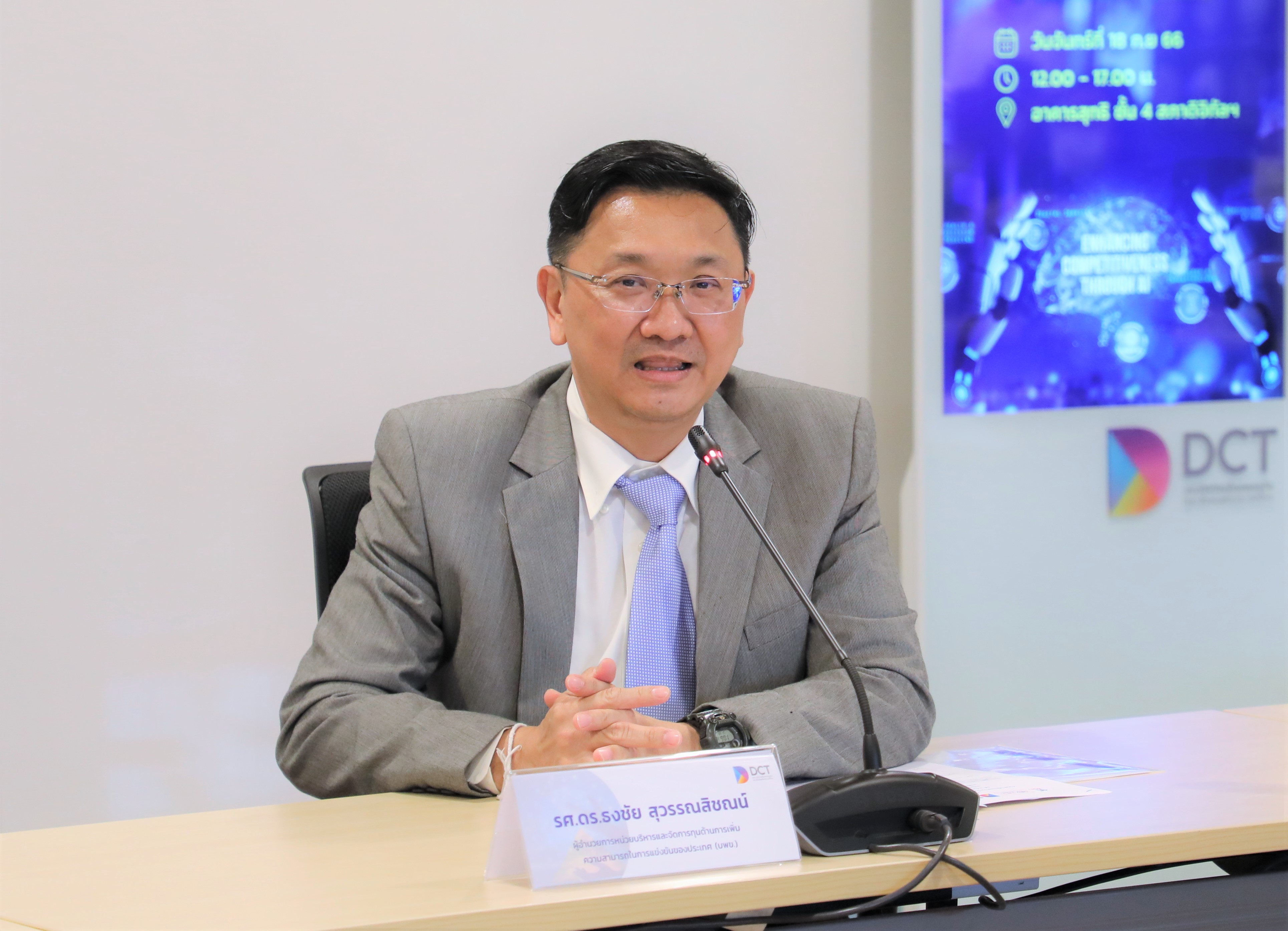 “รศ.ดร.ธงชัย สุวรรณสิชณน์” ผู้อำนวยการ บพข. กล่าวว่า ภารกิจสำคัญของ บพข. คือการ Connect กับสภาดิจิทัลฯ และเครือข่ายต่างๆ เพื่อขับเคลื่อนประเทศให้มีความสามารถในการแข่งขัน โดยจำเป็นต้องขับเคลื่อนการทำงาน อาศัยองค์ความรู้ด้านวิทยาศาสตร์ การวิจัย และนวัตกรรม และทำให้เกิด Collaboration ร่วมกันขับเคลื่อนผู้ประกอบการ และ สตาร์ตอัป ให้มีความสามารถในการแข่งขันในระดับสากล นอกจากนั้น สิ่งสำคัญอีกประการคือการ Create ทำให้เกิดนวัตกรรมใหม่ๆ และทำให้เทคโนโลยีดิจิทัลเป็นนวัตกรรมเชิงพาณิชย์ และเป็นสาธารณประโยชน์สำหรับประเทศ และ Catalyst การเร่งให้เกิดนวัตกรรมไปสู่การใช้ประโยชน์อย่างเป็นรูปธรรม โดยหวังเป็นอย่างยิ่งว่า การทำงานร่วมกันในวันนี้จะนำไปสู่เป้าหมายในการขับเคลื่อนการแข่งขันด้านดิจิทัล ก่อให้เกิด Digital Transformation โดยเฉพาะอุตสาหกรรมสุขภาพและการแพทย์ การเกษตรและอาหาร ยานยนต์ไฟฟ้าและยานยนต์อัตโนมัติ และการท่องเที่ยว ซึ่งถือว่าเป็นจุดเริ่มต้นในการทำงานร่วมกับทุกภาคส่วน ในการสนับสนุนการวิจัยและพัฒนา นำไปสู่การลงทุนต่อไปในอนาคต