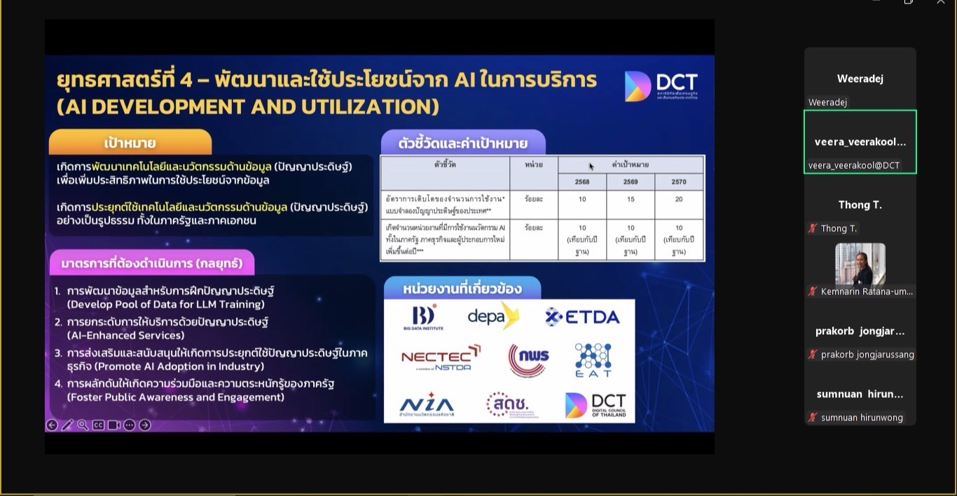 2 กันยายน 2567 - “คณะกรรมการสภาดิจิทัลเพื่อเศรษฐกิจและสังคมแห่งประเทศไทย” ร่วมกันประชุมออนไลน์ พร้อมทั้งรับฟังความคิดเห็นต่อ ร่างแผนยุทธศาสตร์ข้อมูลขนาดใหญ่ 2568 – 2570 โดยสภาดิจิทัลฯ จะดำเนินการรวบรวมข้อคิดเห็นและข้อเสนอแนะต่างๆ เพื่อนำเสนอต่อสถาบันข้อมูลขนาดใหญ่ (องค์การมหาชน) หรือ BDI เพื่อประกอบการปรับปรุง (ร่าง) แผนยุทธศาสตร์ข้อมูลขนาดใหญ่ให้มีความสมบูรณ์ยิ่งขึ้น โดยมุ่งเน้นการจัดทำแผนปฏิบัติการที่เป็นรูปธรรมและสามารถนำไปปฏิบัติได้จริง เพื่อส่งเสริมการใช้ประโยชน์จากข้อมูลขนาดใหญ่ในการขับเคลื่อนการเติบโตทางเศรษฐกิจของประเทศอย่างยั่งยืน