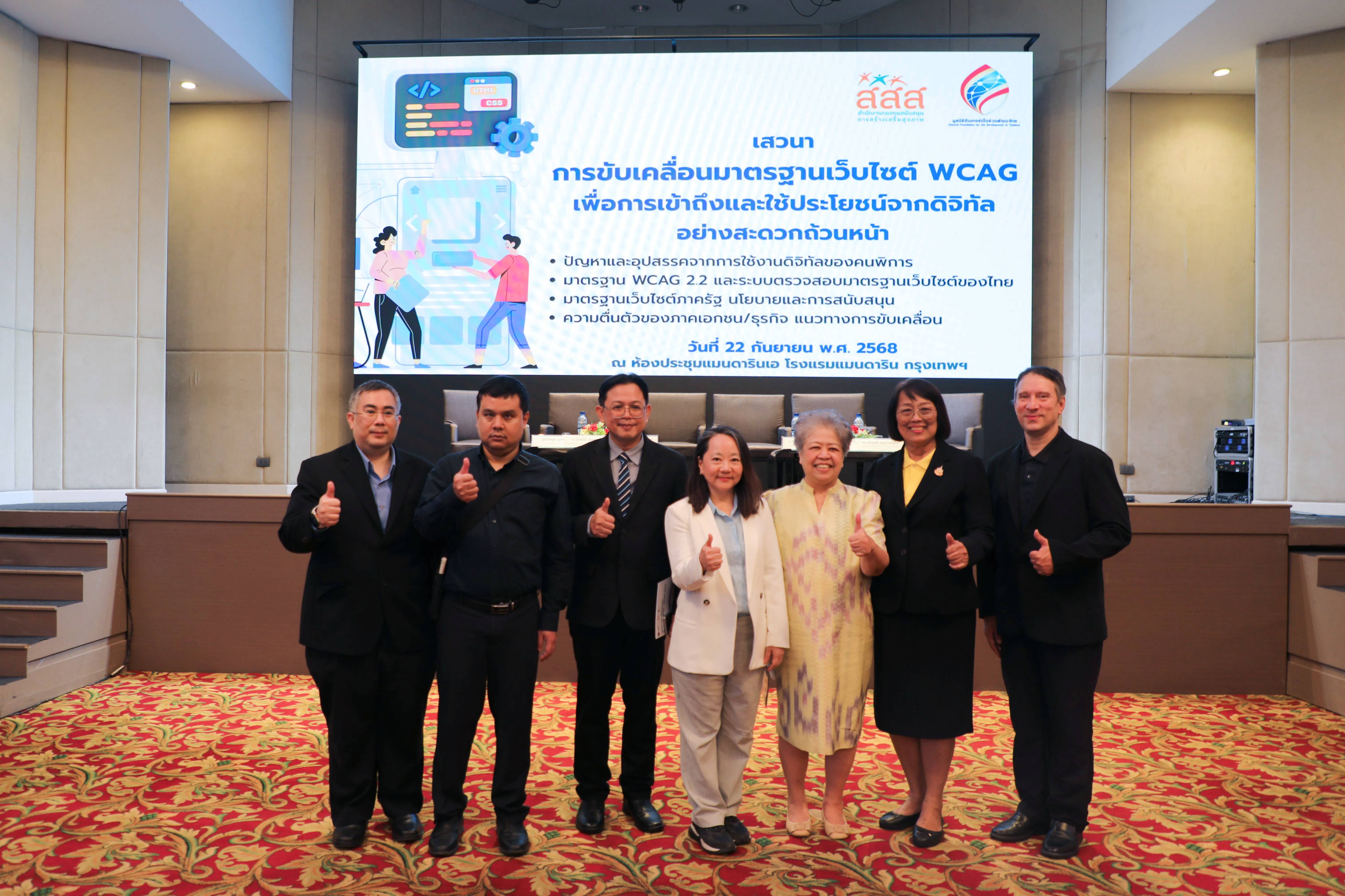 วันที่ 22 กันยายน 2568 ที่โรงแรมแมนดาริน สภาดิจิทัลเพื่อเศรษฐกิจและสังคมแห่งประเทศไทย (DCT) โดย ม.ร.ว. นงคราญ ชมพูนุท ประธานสภาดิจิทัลฯ พร้อมด้วย นายลักษมณ์ เตชะวันชัย รองประธานสภาดิจิทัลฯ ร่วมงานเวทีสื่อสารสาธารณะ ขับเคลื่อนมาตรฐานเว็บไซต์ WCAG เพื่อการเข้าถึงและใช้ประโยชน์จากดิจิทัลอย่างสะดวกถ้วนหน้า ภายใต้ โครงการลดความเหลื่อมล้ำทางดิจิทัล มาตรฐานเว็บไซต์ที่ทุกคนเข้าถึงได้ จัดโดย มูลนิธิอินเทอร์เน็ตร่วมพัฒนาไทย ร่วมกับ คณะทำงานมาตรฐานเว็บไซต์ไทย และภาคีเครือข่าย ณ โรงแรมแมนดาริน กรุงเทพฯ